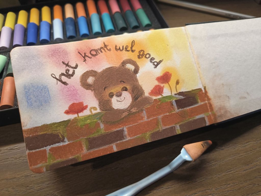 I went to the Van Beek art store. It had a great selection of supplies and (perhaps more importantly) a very friendly staff. I bought a set of 60 Rembrandt soft pastels. This is the first little sample sketch I’ve made with it. I had initially used this sheet to swatch the colors (still visible in the background of the illustration) however Saturday was a weird day for me. I started mindlessly doodling and “finished” the piece today. I may have started this sketch on a lower note but I am ending it on a better note. Such is life, right? Ebbs and flows…